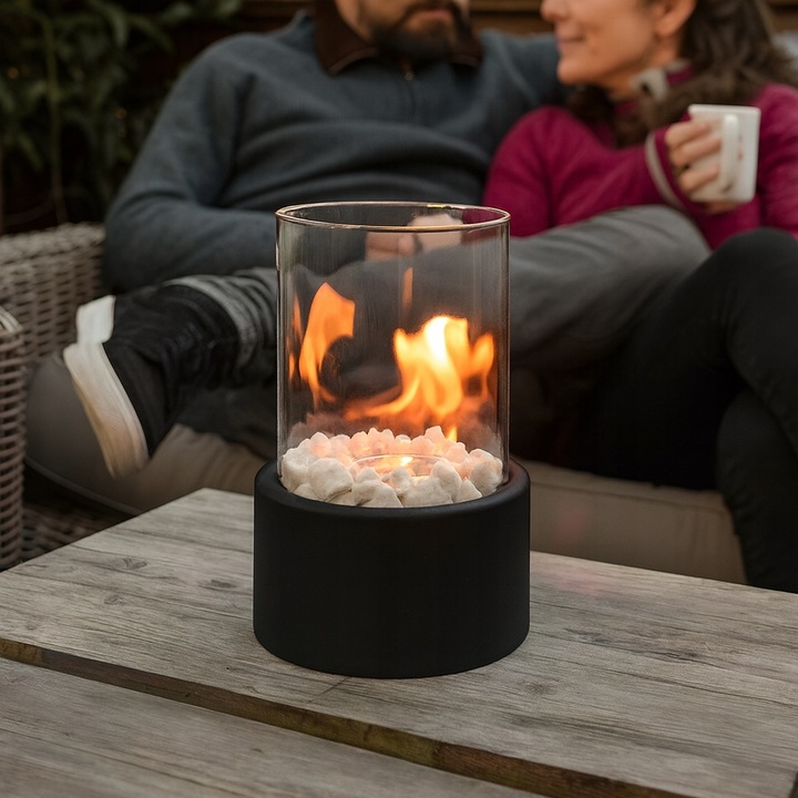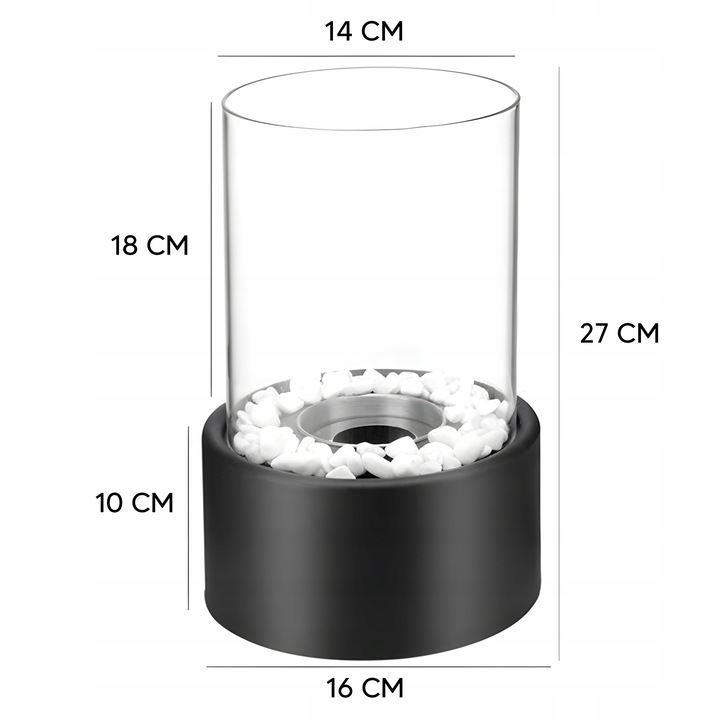 • W zestawie: Biokominek, kamienie ozdobne (2 kolory), wygaszacz płomienia
