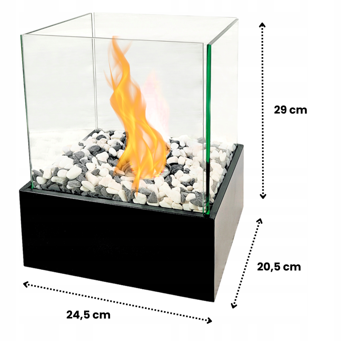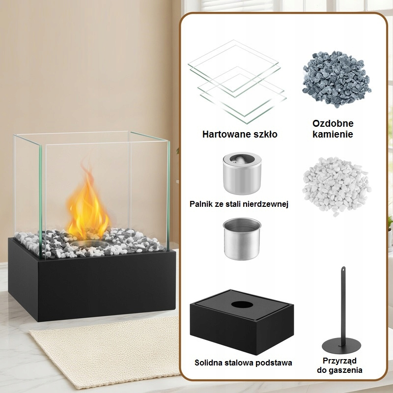 Kwadratowy, wolnostojący biokominek  to idealne połączenie elegancji i funkcjonalności. Zaprojektowany z myślą o prostym, bezdymnym i czystym użytkowaniu — bez komina, bez popiołu, za to z pełnią atmosfery ognia. Doskonale sprawdza się zarówno we wnętrzach, jak i w ogrodach czy na tarasach. Dzięki solidnej konstrukcji i zabezpieczeniom, ogień buduje klimat, nie tworząc zagrożeń.